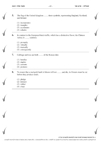 2021 מועד סתיו - 45 - פרק שני- אנגלית