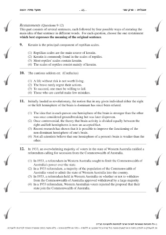 2021 מועד סתיו - 46 - פרק שני- אנגלית