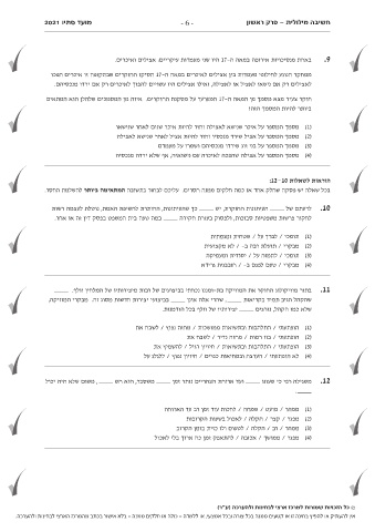 מועד סתיו 2021 חשיבה מילולית -פרק ראשון - 6 -