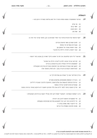 מועד סתיו 2022 - 10 - חשיבה מילולית -פרק ראשון