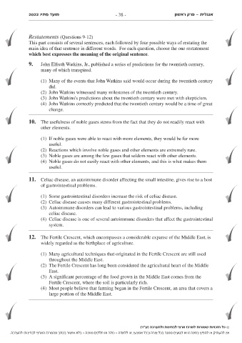 2022 מועד סתיו - 38 - פרק ראשון- אנגלית