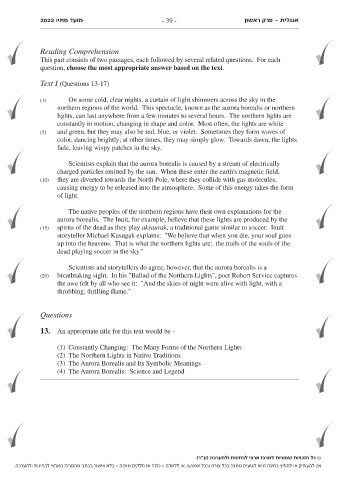 2022 מועד סתיו - 39 - פרק ראשון- אנגלית
