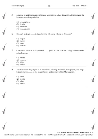 2022 מועד סתיו - 45 - פרק שני- אנגלית