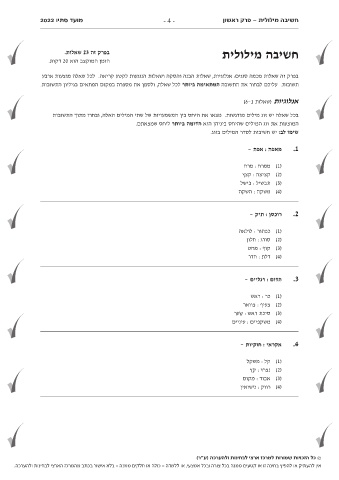 מועד סתיו 2022 חשיבה מילולית -פרק ראשון - 4 -