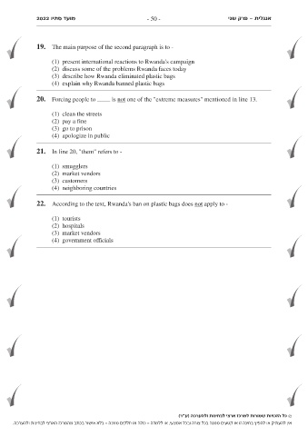 2022 מועד סתיו - 50 - פרק שני- אנגלית