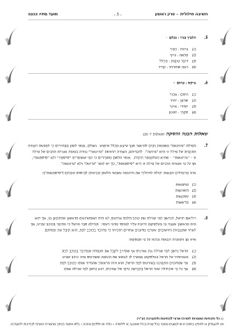 מועד סתיו 2022 חשיבה מילולית -פרק ראשון - 5 -