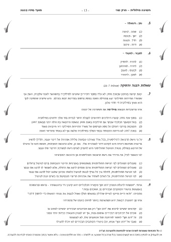 מועד סתיו 2023 - 13 - חשיבה מילולית -פרק שני