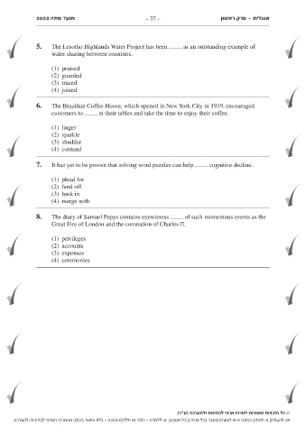 2023 מועד סתיו - 37 - פרק ראשון- אנגלית
