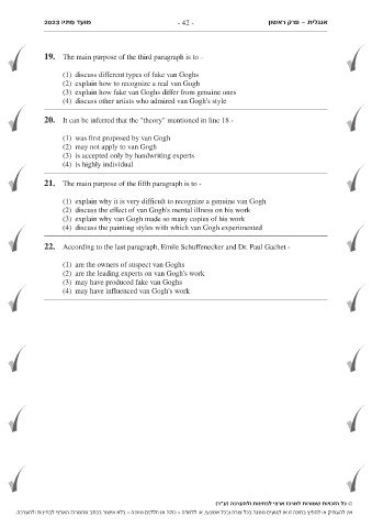 2023 מועד סתיו - 42 - פרק ראשון- אנגלית