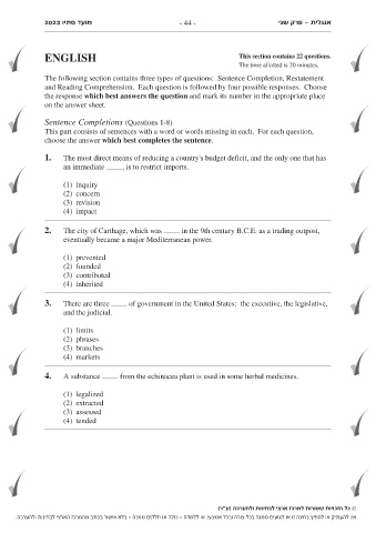2023 מועד סתיו - 44 - פרק שני- אנגלית