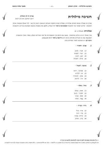 מועד סתיו 2023 חשיבה מילולית -פרק ראשון - 4 -