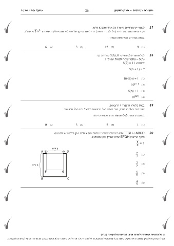 מועד סתיו 2024 - 26 - חשיבה כמותית -פרק ראשון