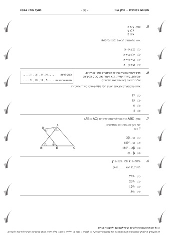 מועד סתיו 2024 - 30 - חשיבה כמותית -פרק שני