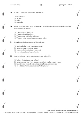 2024 מועד סתיו - 42 - פרק ראשון- אנגלית