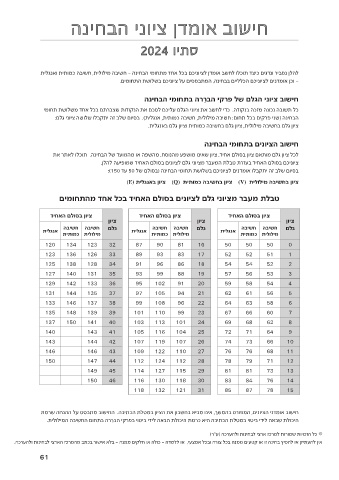 חישוב ציוני הגלם של פרקי הב ֵררה בתחומי הבחינה