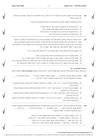 מועד סתיו 2024 חשיבה מילולית -פרק ראשון - 7 -