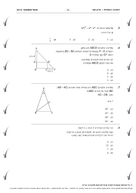‫‪B‬‬                                      ‫בסרטוט שלפניכם ‪ ABCD‬הוא מלבן‪.‬‬            ‫‪.	6‬‬