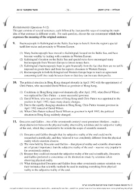 . בלא אישור בכתב מהמרכז הארצי לבחינות ולהערכה- כולה או חלקים ממנה- או ללמדה,אין להעתיק או להפיץ בחינה זו או קטעים ממנה בכל צורה ובכל אמצעי
