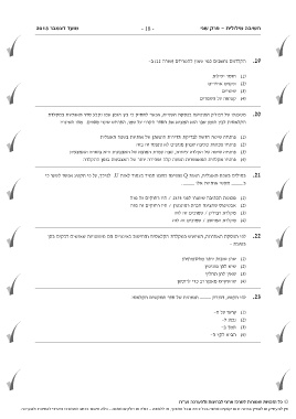 אין להעתיק או להפיץ בחינה זו או קטעים ממנה בכל צורה ובכל אמצעי ,או ללמדה -כולה או חלקים ממנה -בלא אישור בכתב מהמרכז הארצי לבחינות ולהערכה.