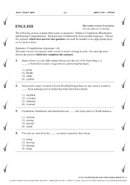 and Reading Comprehension. Each question is followed by four possible responses. Choose