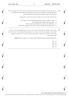 אין להעתיק או להפיץ בחינה זו או קטעים ממנה בכל צורה ובכל אמצעי ,או ללמדה -כולה או חלקים ממנה -בלא אישור בכתב מהמרכז הארצי לבחינות ולהערכה.