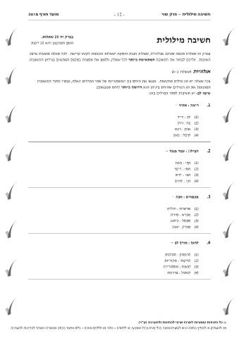 מועד חורף 2018 - 12 - חשיבה מילולית -פרק שני
