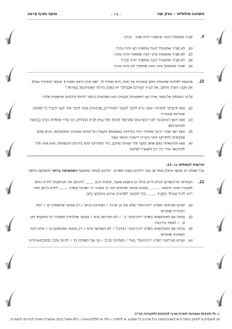 מועד חורף 2018 - 14 - חשיבה מילולית -פרק שני