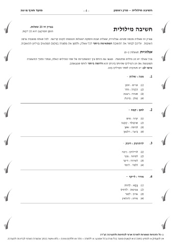 מועד חורף 2018 חשיבה מילולית -פרק ראשון - 4 -