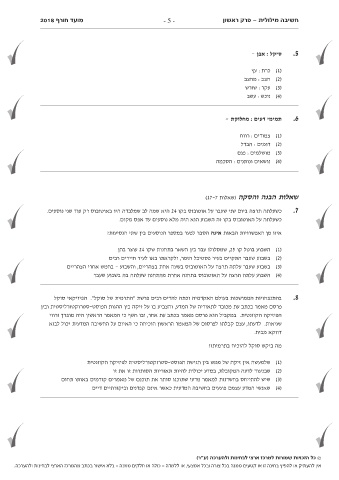 מועד חורף 2018 חשיבה מילולית -פרק ראשון - 5 -