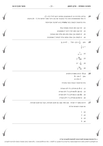 מועד חורף 2019 - 25 - חשיבה כמותית -פרק ראשון