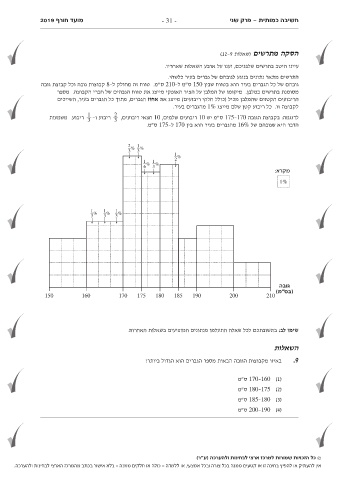 3 3 הדבר היא שגובהם של 16%מהגברים בעיר הוא בין 170ל 175-ס״מ.