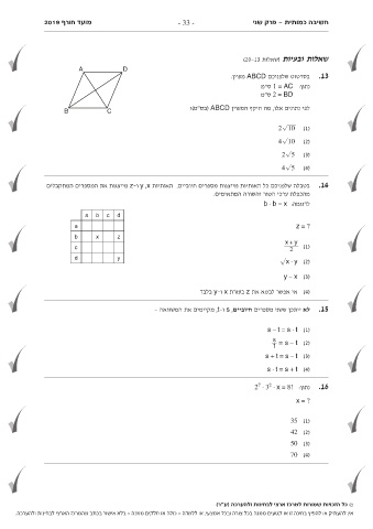 מועד חוBרף 2019 C - 33 - חשיבה כמותית -פרק שני