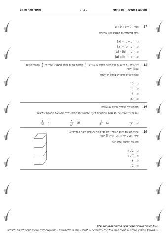מועד חורף 2019 - 34 - חשיבה כמותית -פרק שני