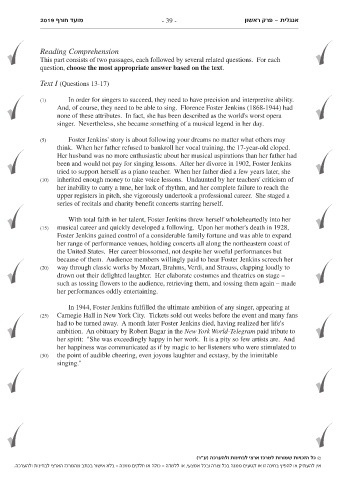 2019 מועד חורף - 39 - פרק ראשון- אנגלית
