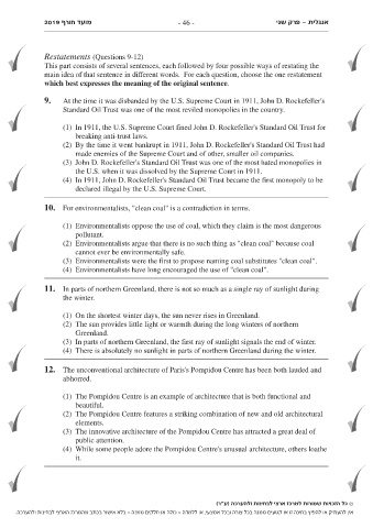 This part consists of several sentences, each followed by four possible ways of restating the