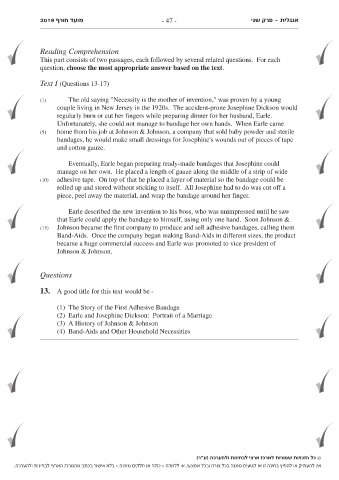 2019 מועד חורף - 47 - פרק שני- אנגלית