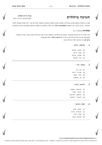 מועד חורף 2020 - 12 - חשיבה מילולית -פרק שני