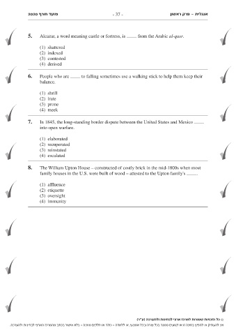 2020 מועד חורף - 37 - פרק ראשון- אנגלית