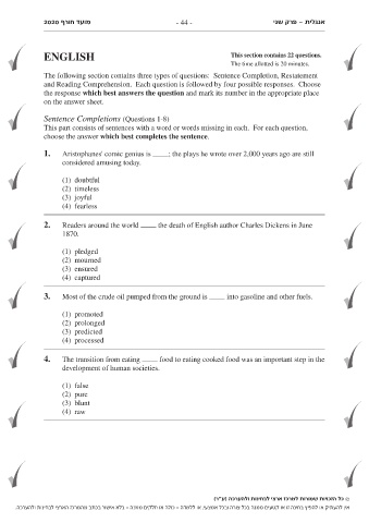 2020 מועד חורף - 44 - פרק שני- אנגלית