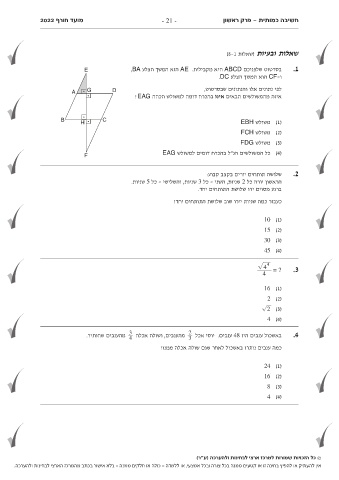 וב-סFרטCוטהושאלהפנמי0כש0ךם2הDקצ"לCמעDACBה.יא מקבילית AE .הוא המשך הצלע ,BA .1