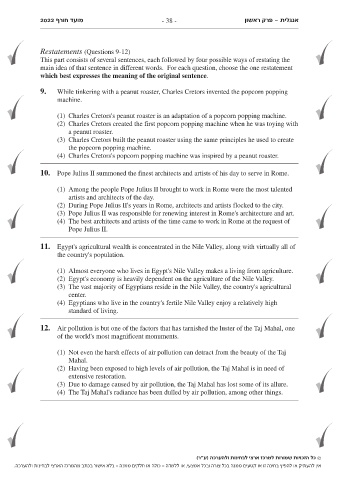 2022 מועד חורף - 38 - פרק ראשון- אנגלית