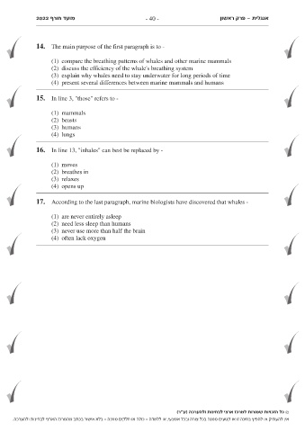 2022 מועד חורף - 40 - פרק ראשון- אנגלית