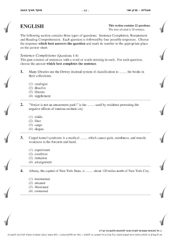 ENGLISH This section contains 22 questions.