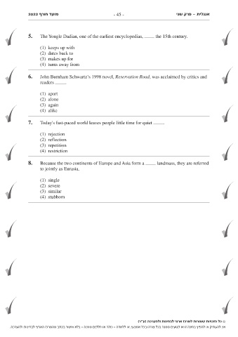 . בלא אישור בכתב מהמרכז הארצי לבחינות ולהערכה- כולה או חלקים ממנה- או ללמדה,אין להעתיק או להפיץ בחינה זו או קטעים ממנה בכל צורה ובכל אמצעי
