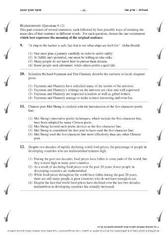 2022 מועד חורף - 46 - פרק שני- אנגלית