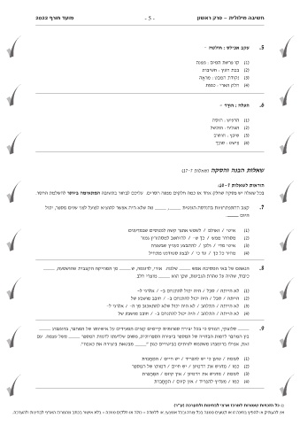מועד חורף 2022 חשיבה מילולית -פרק ראשון - 5 -