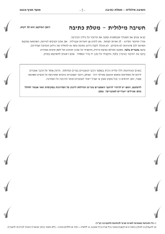 הזמן המוקצב הוא 30דקות. חשיבה מילולית -מטלת כתיבה