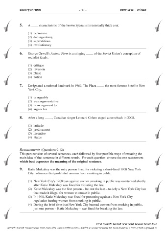 2023 מועד חורף - 37 - פרק ראשון- אנגלית