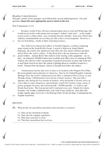 2023 מועד חורף - 39 - פרק ראשון- אנגלית
