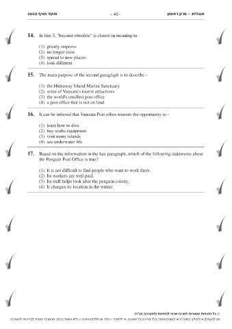 2023 מועד חורף - 40 - פרק ראשון- אנגלית